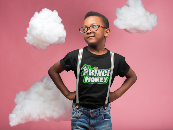 Introducing the Kingdom Money Toddler T-Shirt, perfect for your little prince! This stylish black t-shirt is made from 100% cotton and is available in sizes 2T-4T.