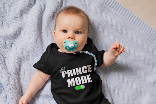 Order your Prince Mode Onesie (Black) today and dress your little prince in style!